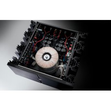 Концепция «двойное моно» реализована с использованием двух тороидальных трансформаторов по 1200 ВА каждый, что гарантирует предельную динамику и независимое питание каналов. В основе усилительных каскадов — только дискретные элементы и фирменные малошумящие модули, собранные на четырёхслойной печатной плате с оптимизированной трассировкой. В выходном каскаде работает по 12 биполярных транзисторов на канал, обеспечивая мощный, но одновременно точный и контролируемый звук.