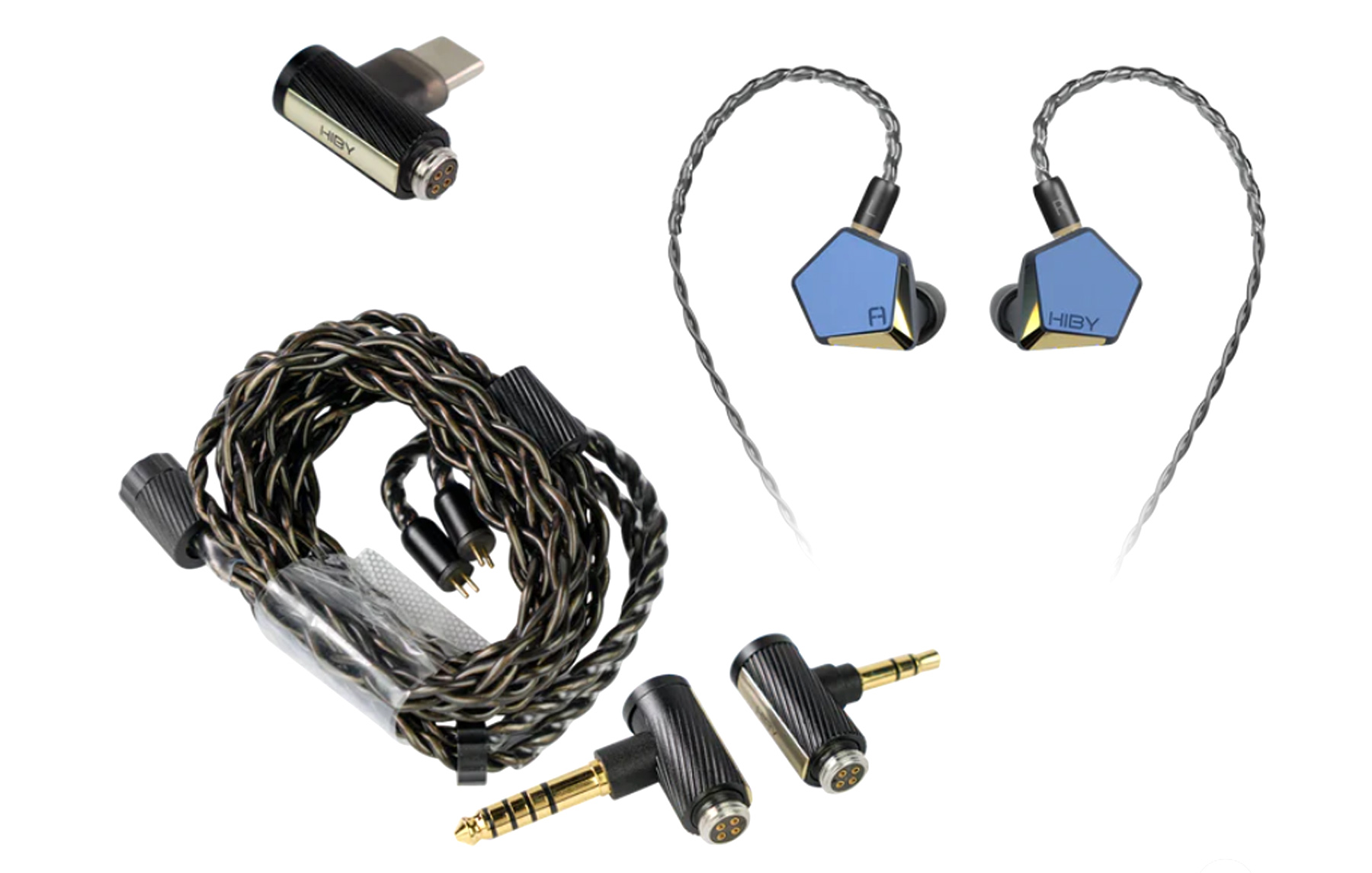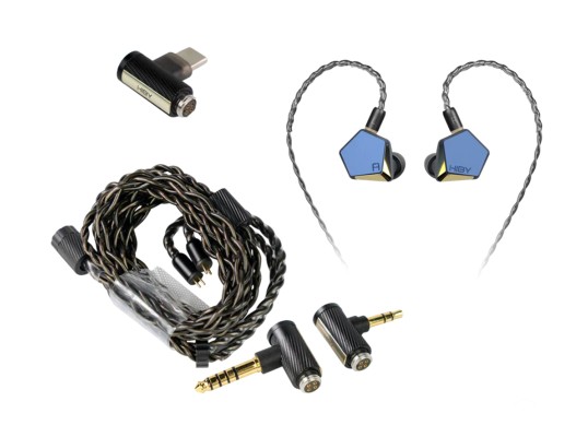 Корпус изготовлен из алюминиевого сплава T6063 с прецизионной обработкой. Подключение — через стандартные MMCX-разъёмы. В комплекте идёт съёмный кабель Litz Type-5 (медь с посеребрением), а также адаптеры под разъёмы 3.5 мм и 4.4 мм. Доступна версия с USB-C.